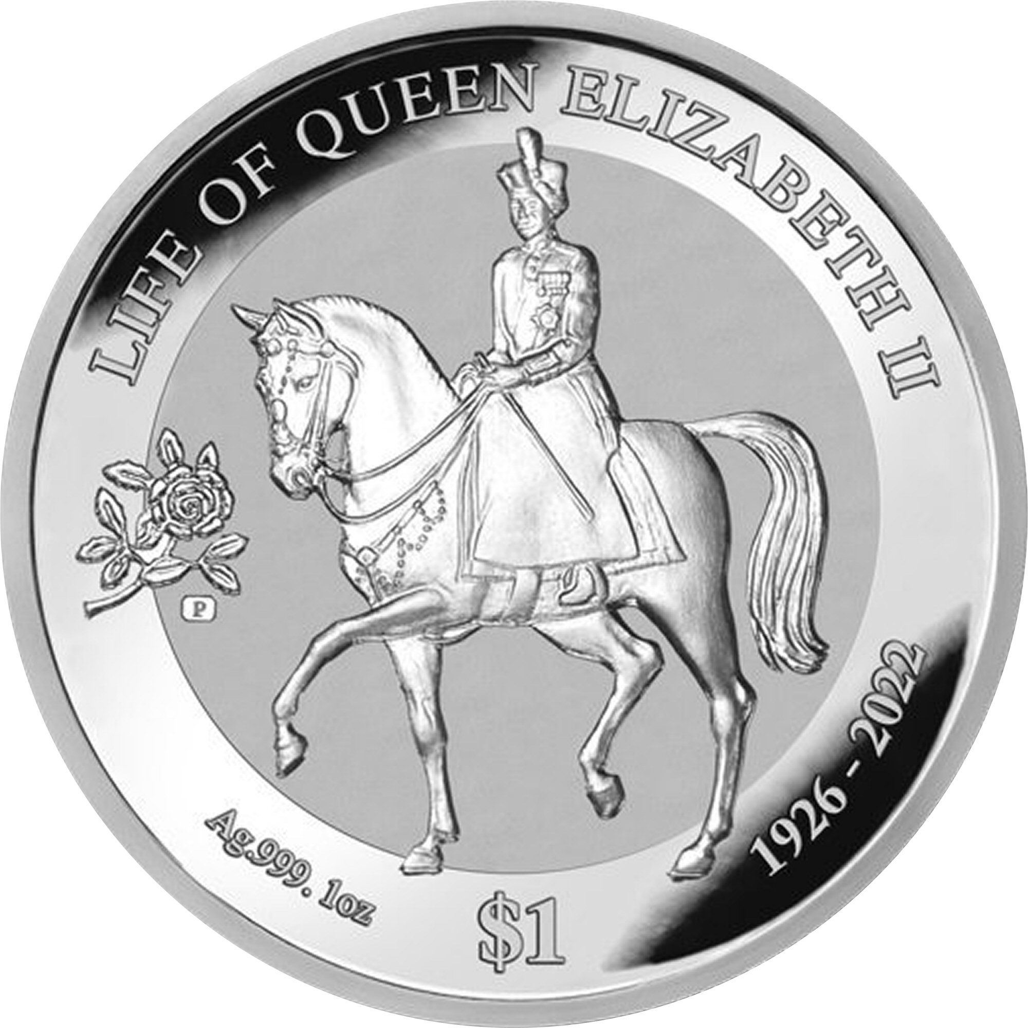 This 1 Dollar coin from the British Virgin Islands, issued in 2022, commemorates the life of Queen Elizabeth II. The coin features a dual portrait of the Queen alongside a younger version of herself, symbolizing her enduring legacy. The intricate design showcases her royal crown and detailed facial features, emphasizing her significance in British history. Made of .999 fine silver, this coin not only holds numismatic value but also reflects the current market value of silver, enhancing its appeal to collectors. As a limited issue, it is a tribute to the Queen's reign and a valuable addition to any collection, particularly for those focused on royal memorabilia.