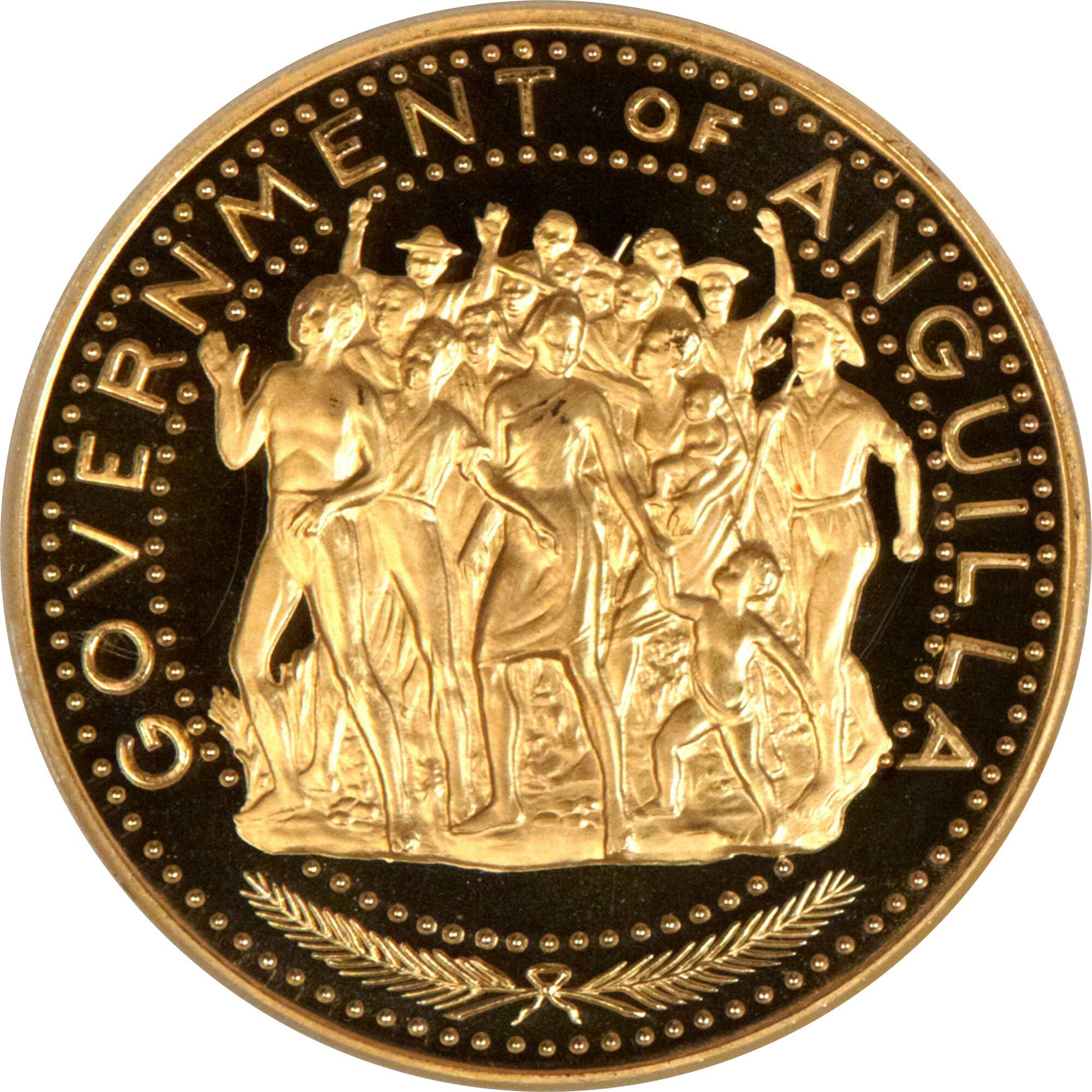 The 100 Dollars coin from Anguilla, minted between 1969 and 1970, features a striking design that showcases a group of figures representing the local populace, symbolizing the island's cultural heritage. The obverse trial exemplifies the artistic craftsmanship of the era, with detailed engravings that depict the community in a lively manner. Made of gilding metal plated brass, this coin holds historical significance as it reflects the socio-political climate of Anguilla during its push for independence. As a collector's item, its unique design and limited mintage contribute to its desirability, making it a noteworthy addition to any numismatic collection. The gilded finish enhances its aesthetic appeal, although it does not contain precious metals, affecting its market value compared to coins made from gold or silver.