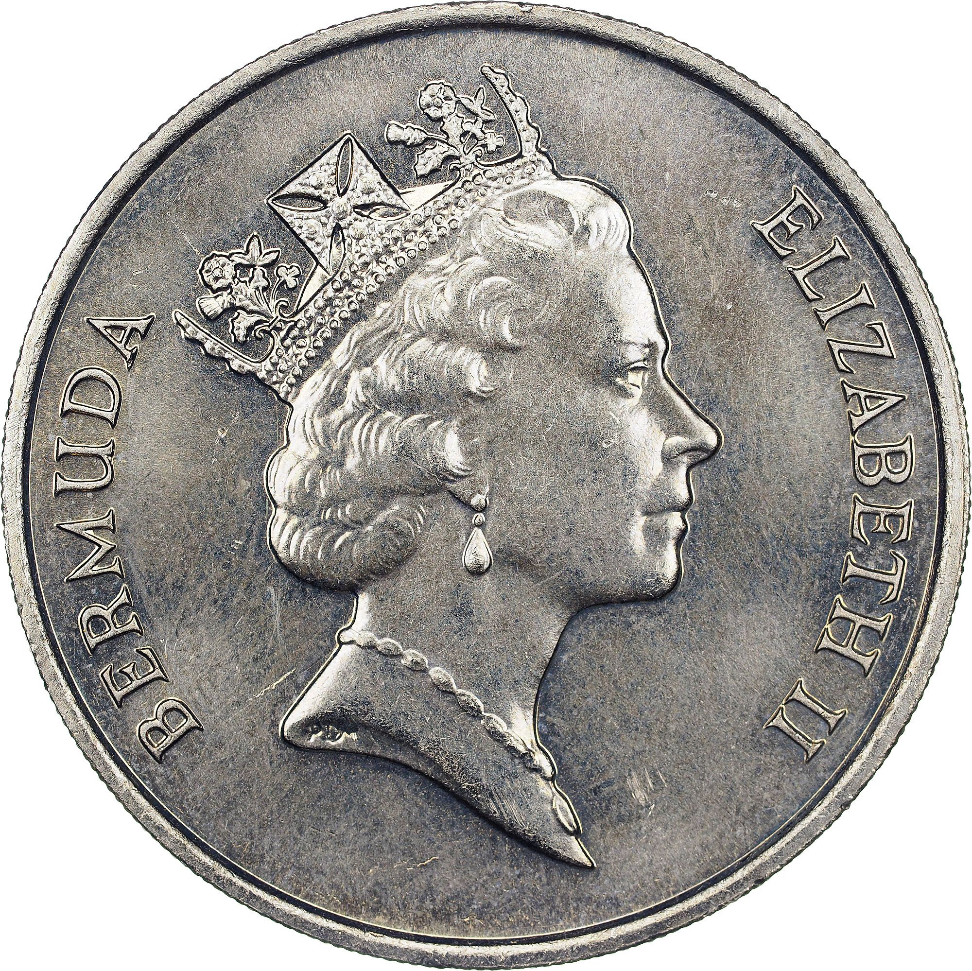 The 50 Cents coin from Bermuda, featuring the second portrait of Queen Elizabeth II, is a notable piece of numismatic history. Struck between 1970 and 1985, this coin showcases a profile of the Queen adorned with a tiara, symbolizing her reign and connection to the British Commonwealth. The reverse side typically features a design representative of Bermuda's culture or wildlife, though specifics depend on the exact year of minting. Made of copper-nickel, the coin weighs 12.6 grams, making it durable for circulation. While not composed of precious metals, its historical significance and the Queen's enduring legacy contribute to its appeal among collectors. The coin's design elements and composition make it a fascinating addition to any collection focused on British territories or royal memorabilia.