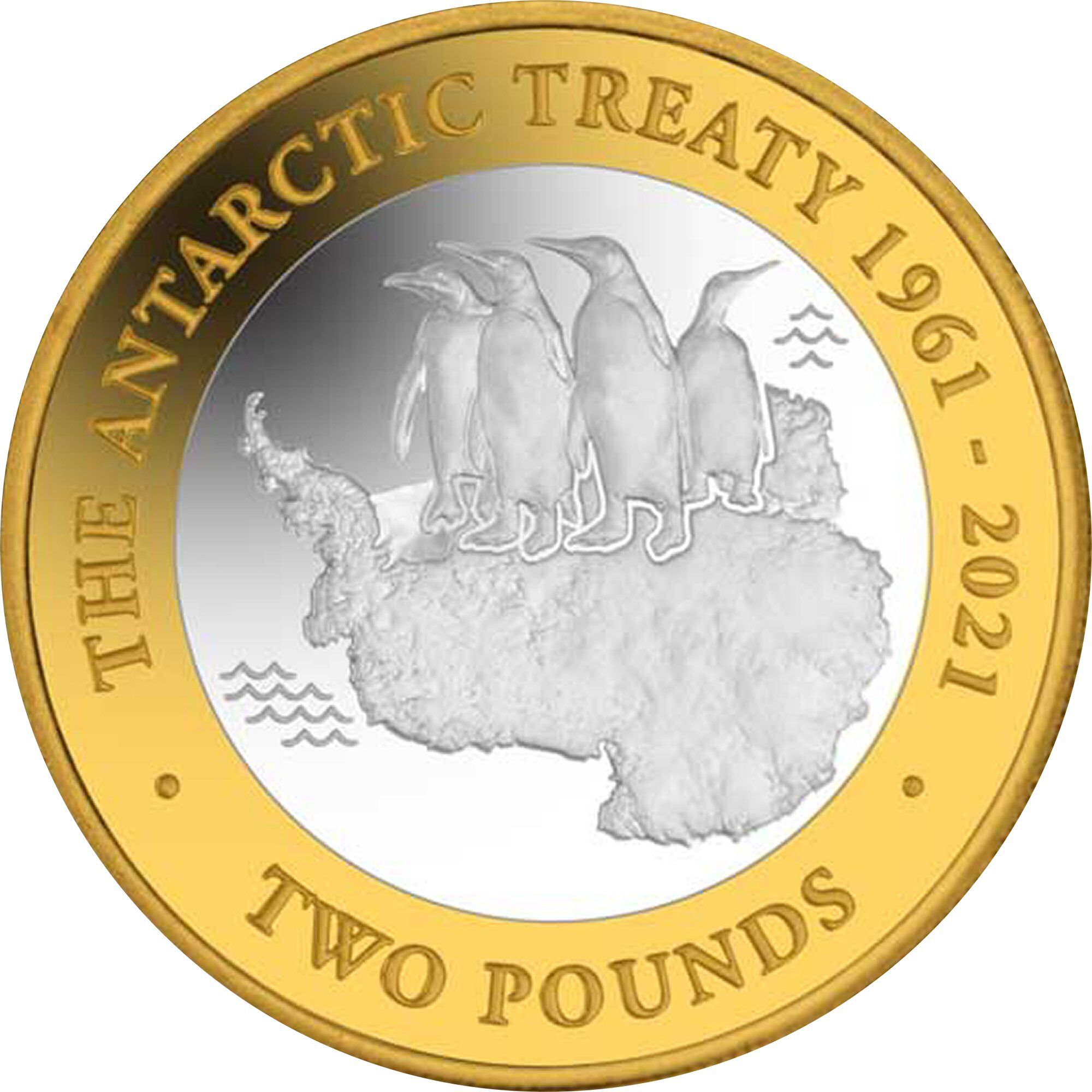 The 2 Pounds coin issued by the British Antarctic Territory in 2021 commemorates the Antarctic Treaty, symbolizing international cooperation in the preservation of the Antarctic region. The coin features a striking design with the effigy of Queen Elizabeth II on the obverse, showcasing her profile adorned with a crown, surrounded by the inscription 'BRITISH ANTARCTIC TERRITORY' and the year '2021'. The coin's composition includes .999 silver with a gold plated outer ring, enhancing its aesthetic appeal and intrinsic value. This combination of precious metals not only adds to its allure but also makes it a desirable piece for collectors. The coin's limited mintage and thematic significance contribute to its importance in numismatic circles.