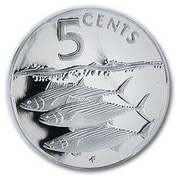 The 5 Cents coin from the British Virgin Islands, issued in 1985, features a striking design that showcases a profile of Queen Elizabeth II, surrounded by the inscriptions 'ELIZABETH THE SECOND' and 'BRITISH VIRGIN ISLANDS.' The reverse side depicts a bonito fish, symbolizing the rich marine life of the region, making it a noteworthy piece for collectors interested in wildlife themes. Composed of .925 silver, this coin not only holds aesthetic value but also intrinsic value due to its silver content, which enhances its desirability among numismatists. The limited mintage from 1985 adds to its significance, making it a sought-after item for those collecting coins from the British Virgin Islands or silver proof coins in general.