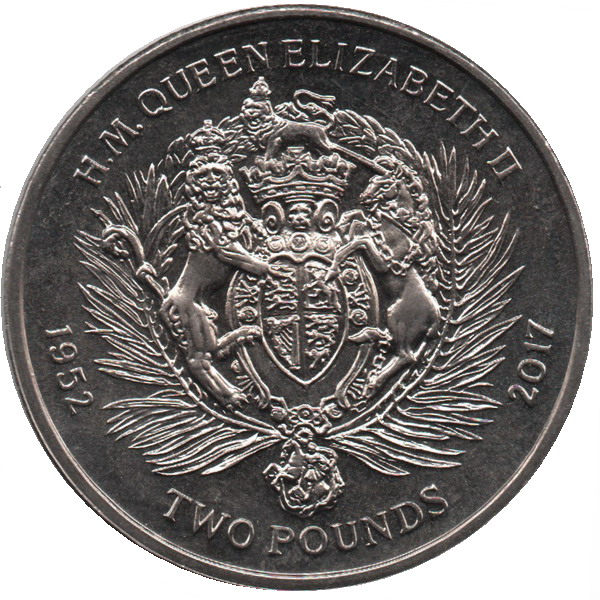 The 2 Pounds coin issued by the British Indian Ocean Territory in 2017 features a striking design that highlights the profile of Queen Elizabeth II, showcasing her regal appearance adorned with a crown. The reverse side likely displays the coat of arms, a symbol of the territory's identity and heritage. This coin, composed of copper-nickel, weighs 28.28g and reflects the artistic craftsmanship typical of British coinage. While it is not made from precious metals, its historical significance and connection to a unique territory make it appealing to collectors. The limited year of issue adds to its desirability, making it a noteworthy addition for numismatists interested in modern British coins.