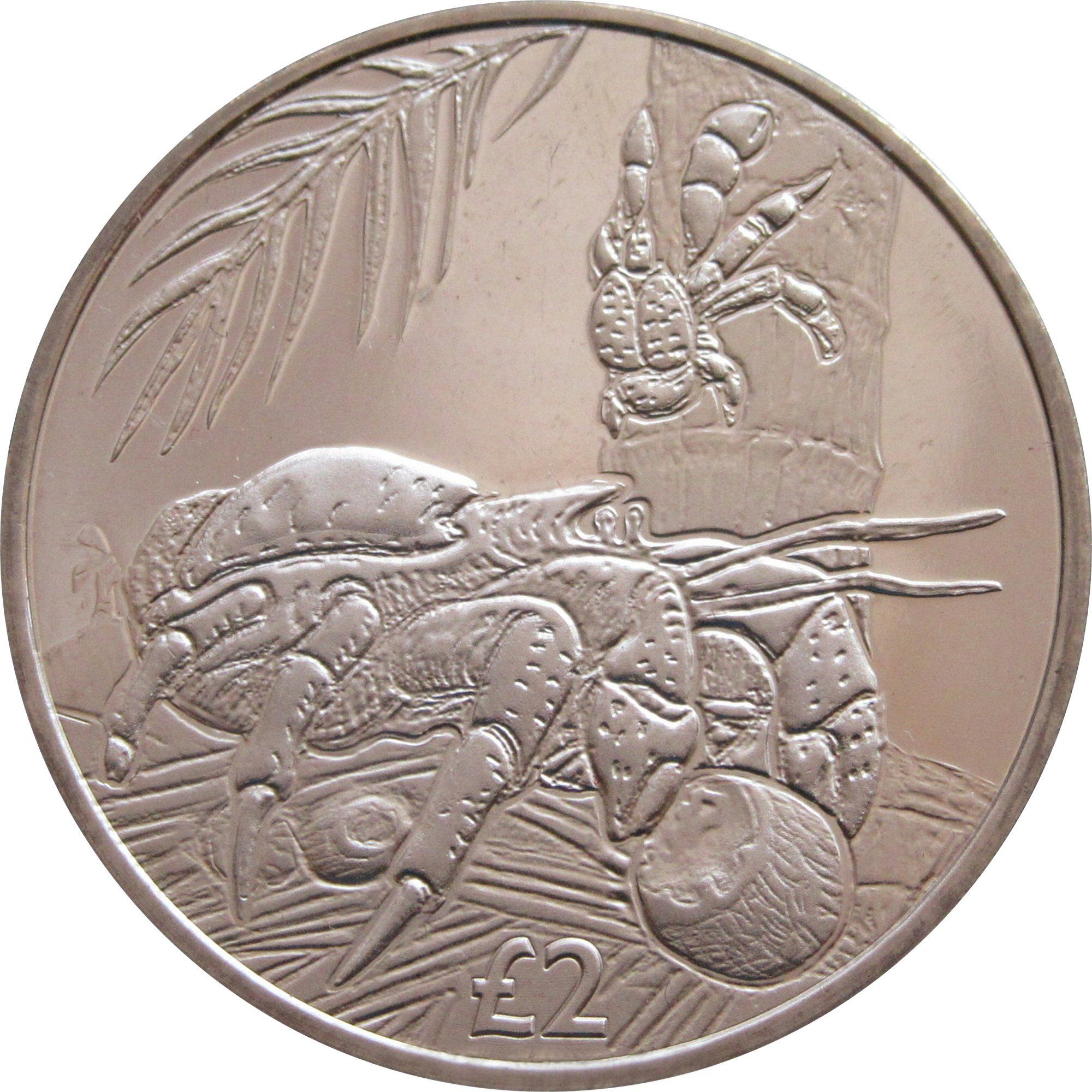 This 2 Pound coin issued by the British Indian Ocean Territory in 2018 features a detailed portrait of Queen Elizabeth II, showcasing her regal profile adorned with a crown. The reverse side of the coin highlights the unique theme of coconut crabs, emphasizing the rich biodiversity of the region. Made from copper-nickel, the coin weighs 28.28g, making it a substantial piece for collectors. Its design not only commemorates the natural heritage of the territory but also serves as a reminder of the importance of conservation. As a limited issue coin, it holds significant appeal for numismatists and wildlife enthusiasts alike, reflecting both cultural and environmental values.
