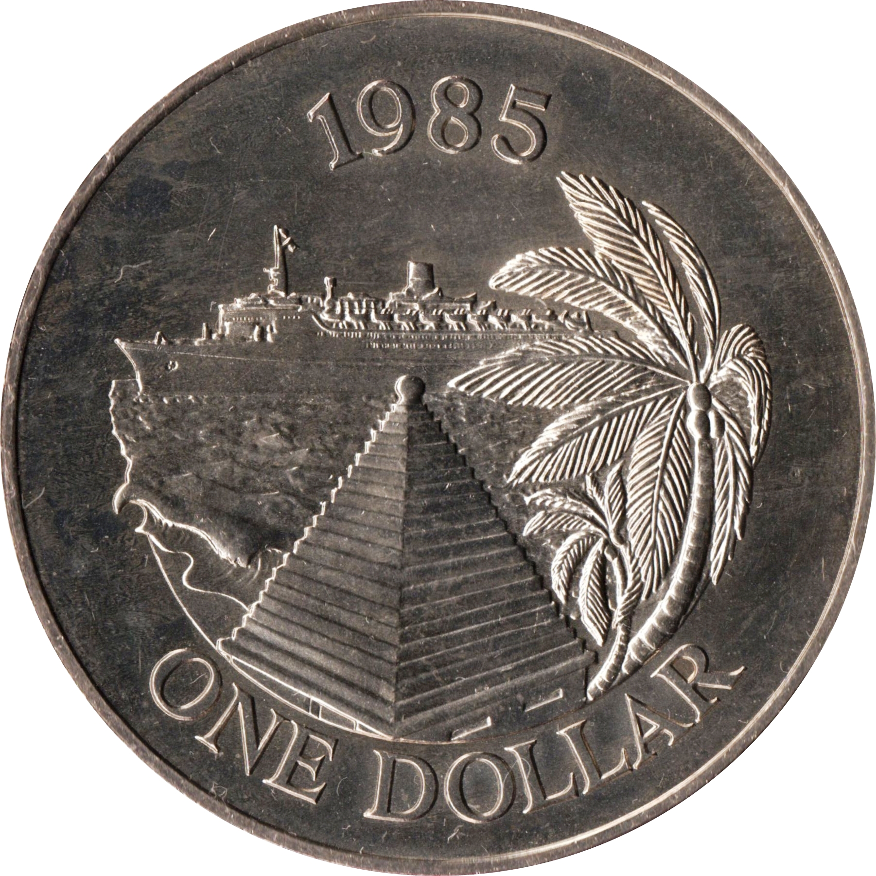 The 1 Dollar coin from Bermuda, issued in 1985, features a striking profile of Queen Elizabeth II, showcasing her regal appearance adorned with a crown. This coin is part of a series that celebrates cruise ship tourism, reflecting Bermuda's significance as a popular travel destination. The reverse side likely depicts a design related to maritime themes, emphasizing the island's connection to the sea. Made from copper-nickel, the coin weighs 28.28g, providing a robust feel. While not composed of precious metals, its historical context and design make it appealing to collectors. The limited year of issue adds to its desirability, as collectors often seek coins that commemorate specific events or themes.