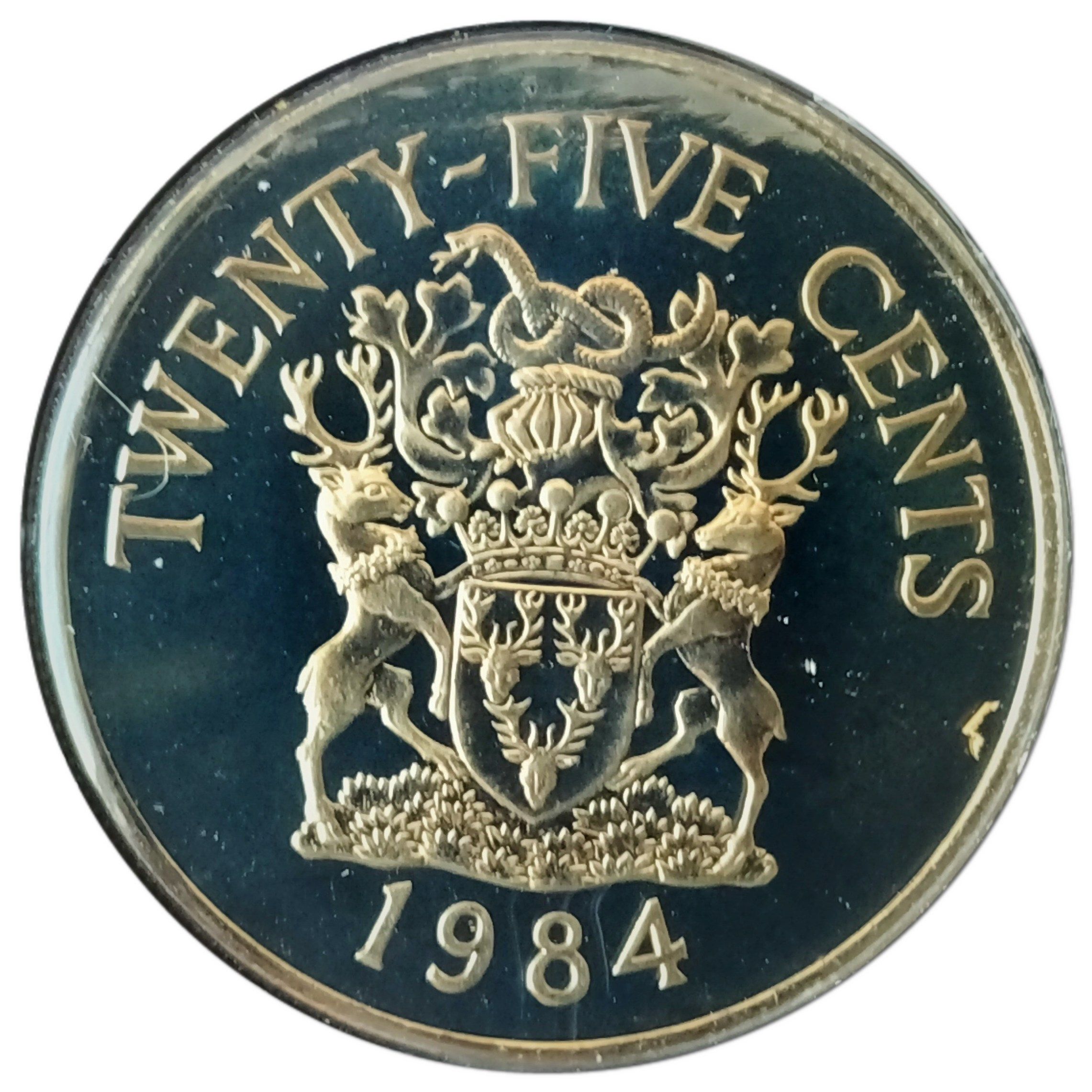 The 25 Cents coin from Bermuda, issued in 1984, features a striking portrait of Queen Elizabeth II, showcasing her profile adorned with a crown. The design emphasizes the royal heritage of Bermuda and reflects the island's connection to the British monarchy. Crafted from copper-nickel, this coin weighs 5.96 grams and exhibits a shiny, metallic finish that appeals to collectors. The reverse side typically features local motifs or symbols, enhancing its cultural significance. As a piece from a limited year, it holds importance for numismatists, particularly those focused on British territories. While not composed of precious metals, its historical context and design elements contribute to its collectible value.