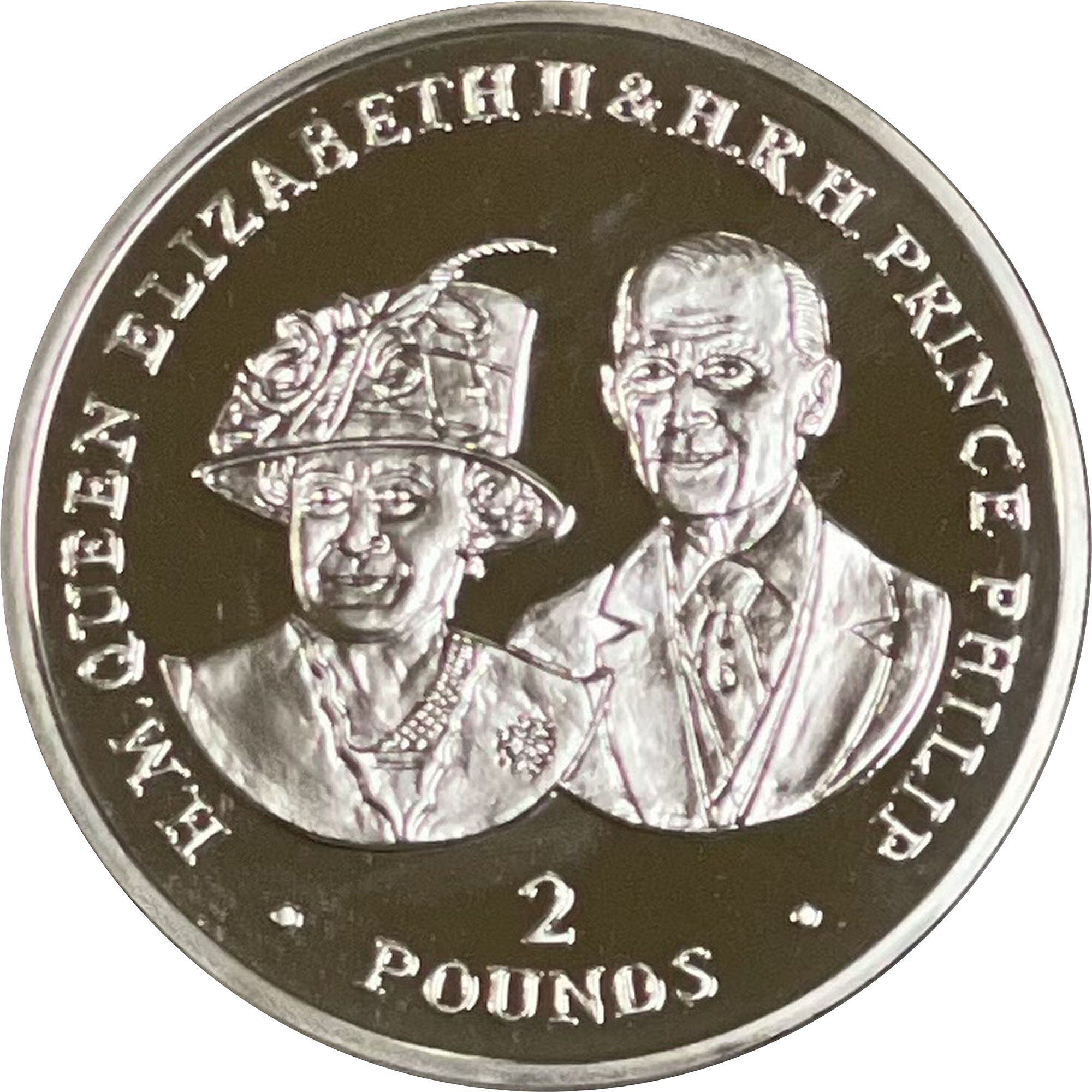 This 2 Pounds coin from the British Indian Ocean Territory features a dual portrait of Queen Elizabeth II and Prince Philip, showcasing the royal couple's significance in British history. Struck in 2017, this coin commemorates their enduring legacy and is a testament to the royal family's influence. The coin's design is elegantly executed, highlighting the detailed profiles of both monarchs, surrounded by the inscription 'ELIZABETH II 2017 BRITISH INDIAN OCEAN TERRITORY'. Made of .925 silver, weighing 28.28g, this coin not only serves as a collector's item but also carries intrinsic value due to its precious metal composition, making it appealing to numismatists and investors alike.