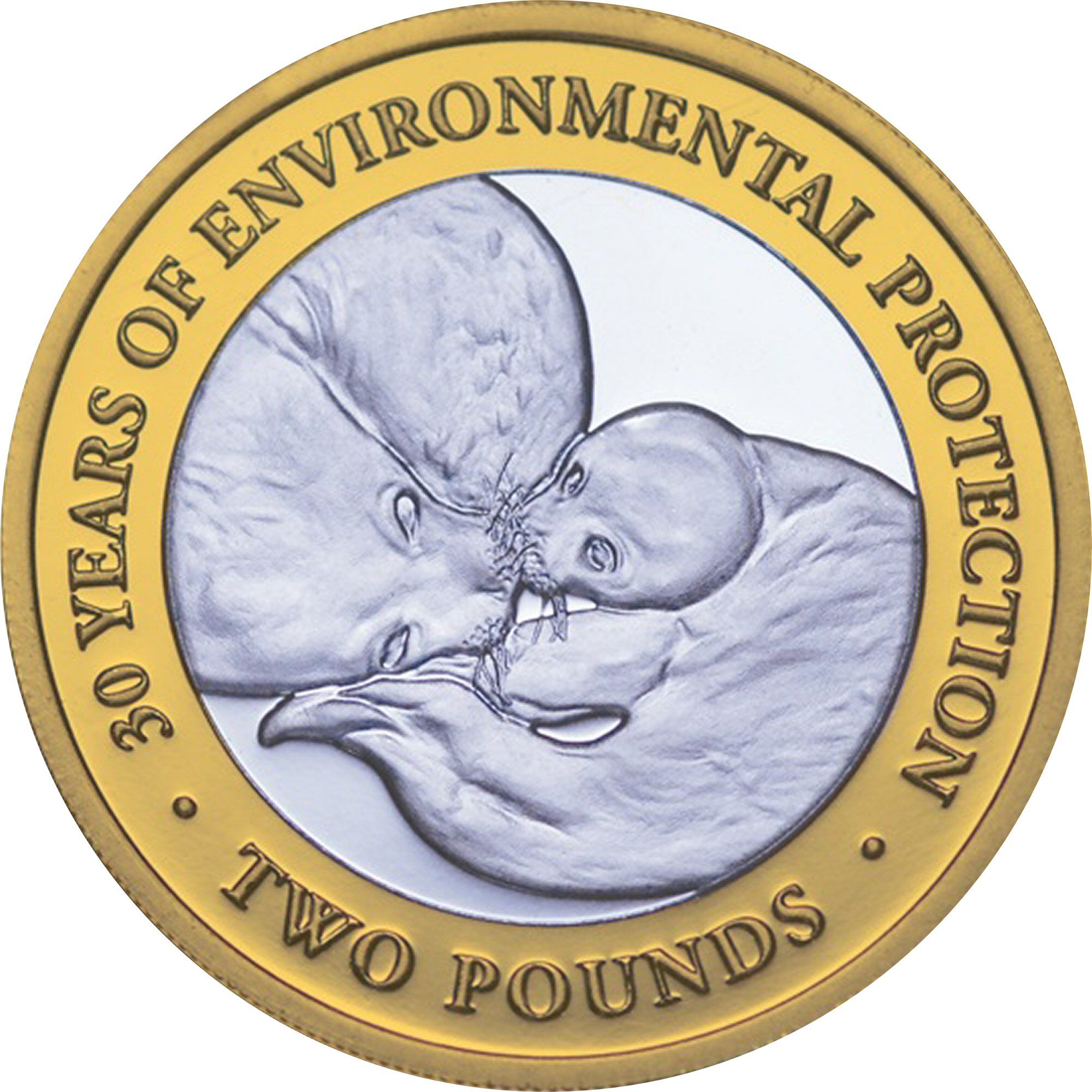The 2 Pounds coin issued by the British Antarctic Territory in 2021 features a striking design that highlights the importance of environmental protection. The obverse showcases a detailed portrait of Queen Elizabeth II, surrounded by the inscription 'BRITISH ANTARCTIC TERRITORY' and the year '2021'. The coin's unique composition includes a silver (.999) core with a gold-plated outer ring, enhancing its aesthetic appeal and intrinsic value. This combination of metals not only signifies the coin's commemorative nature but also elevates its desirability among collectors. As a limited issue, it reflects both historical significance and contemporary themes related to environmental conservation, making it a valuable addition to any numismatic collection.