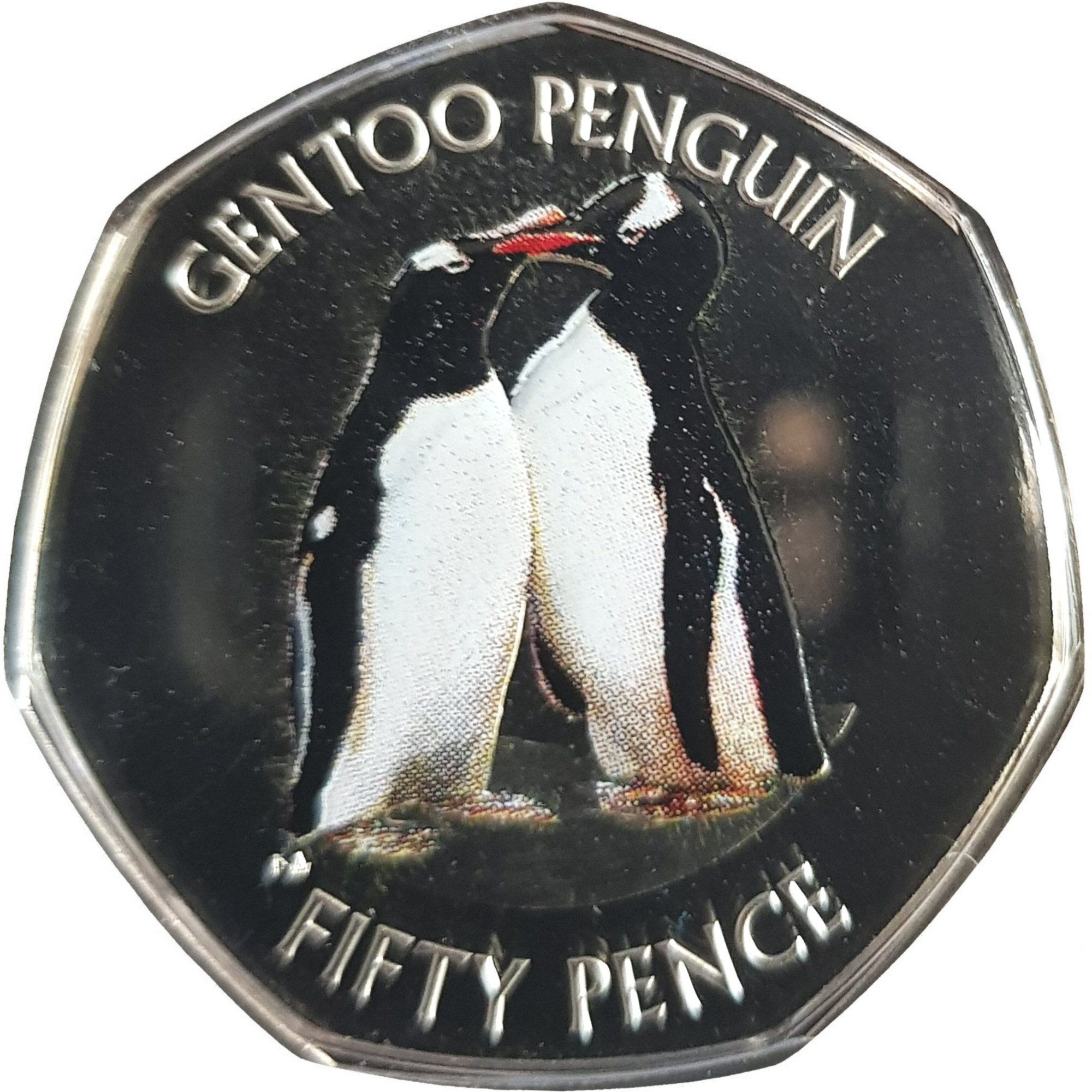 The 50 Pence coin issued by the British Antarctic Territory in 2019 features a beautifully colored depiction of a Gentoo penguin, symbolizing the unique wildlife of the region. This coin is part of a series that celebrates the rich biodiversity of Antarctica, making it significant for both collectors and environmental advocates. The reverse side showcases the penguin in vibrant colors, while the obverse features the iconic portrait of Queen Elizabeth II, surrounded by the inscription 'BRITISH ANTARCTIC TERRITORY 2019'. Made of copper-nickel with a diamond finish, this coin is not composed of precious metals, but its unique design and limited issuance enhance its numismatic value, appealing to collectors seeking to commemorate the natural beauty of the Antarctic region.