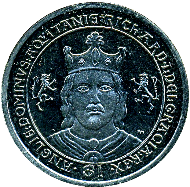 The 1 Dollar coin issued by the British Virgin Islands in 2008 features a striking portrait of Queen Elizabeth II, showcasing her regal profile adorned with a crown. This coin is part of a series that commemorates significant historical figures, in this case, King Richard I, known as the Lionheart. The reverse side typically features thematic designs related to the historical significance of the monarch. Made from copper-nickel, this coin weighs 28.28g and is notable for its durability and resistance to wear, making it a popular choice among collectors. While it does not contain precious metals, its historical context and limited mintage contribute to its appeal and potential value in numismatic circles.