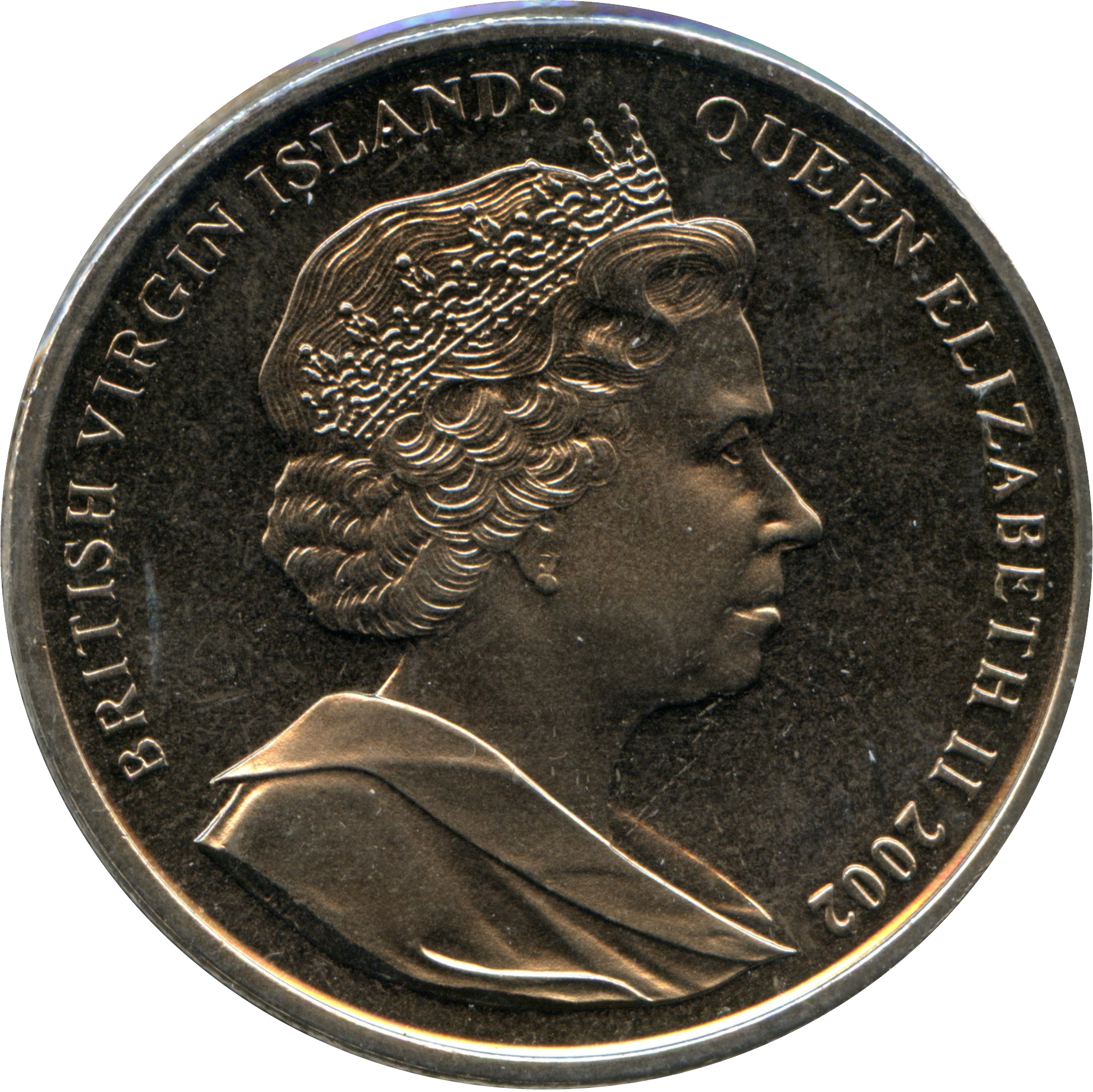 The 2016 $5 coin from the British Virgin Islands features a striking design showcasing a profile of Queen Elizabeth II, adorned with a crown, symbolizing her long reign and connection to the British monarchy. The reverse side of the coin likely depicts a lemon shark, a nod to marine life and conservation efforts, reflecting the islands' rich aquatic biodiversity. Made of titanium, this coin is lightweight yet durable, making it an appealing choice for collectors. Its unique composition enhances its value, while the limited mintage in 2016 adds to its desirability among numismatists. This coin serves not only as currency but also as a commemorative piece celebrating both royal heritage and environmental themes.