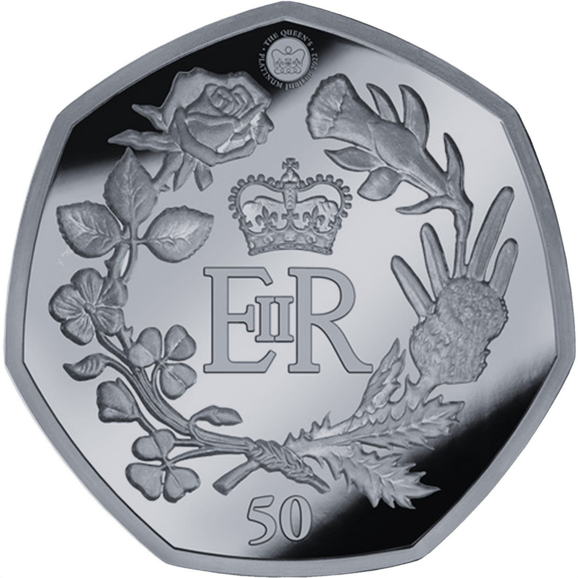 The 50 Pence coin issued by the British Antarctic Territory in 2022 commemorates the Platinum Jubilee of Queen Elizabeth II. The coin features a detailed depiction of the Queen's profile, adorned with a crown and intricate jewelry, symbolizing her long reign and significant contributions to the Commonwealth. The reverse side typically showcases elements related to the Jubilee, celebrating a historic milestone. Made of .925 silver, this coin not only holds numismatic value but also intrinsic value due to its precious metal composition. Its limited mintage and unique theme make it a desirable piece for collectors, reflecting both historical significance and artistic craftsmanship.