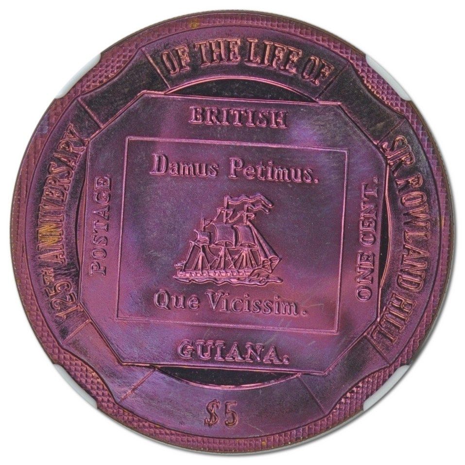 The 5 Dollars coin issued by the British Virgin Islands in 2004 features a striking portrait of Queen Elizabeth II, designed by Ian Rank-Broadley. The coin is notable for its unique titanium composition, which gives it a distinctive appearance and weight of 10g. This coin commemorates Rowland Hill, who is recognized for his contributions to the postal system, making it significant in both numismatic and historical contexts. The vibrant colors and design elements make it appealing to collectors, especially those interested in modern commemorative issues. While it is not made of precious metals, its rarity and unique design contribute to its value in the collector's market.