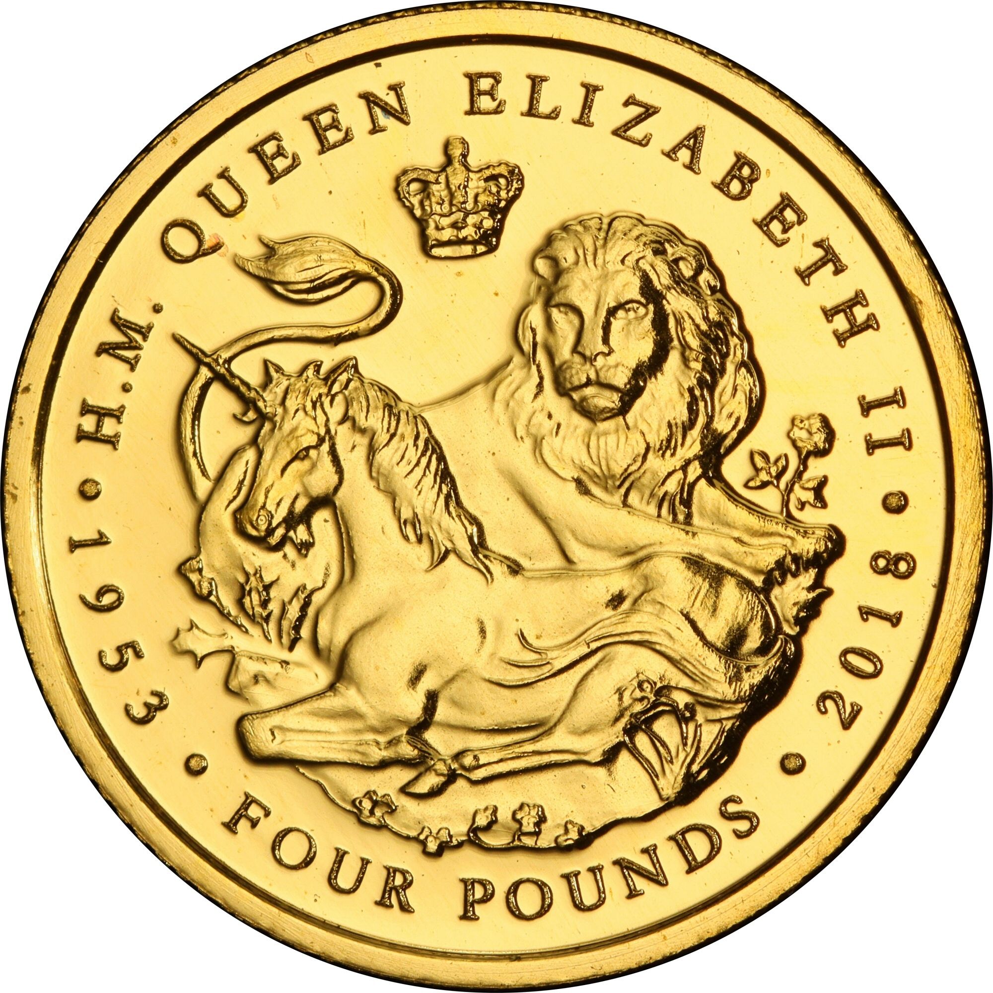 The 4 Pounds coin issued by the British Indian Ocean Territory in 2018 features a striking design that showcases the profile of Queen Elizabeth II, adorned with a crown and intricate jewelry. The reverse side typically depicts the iconic symbols of the Lion and the Unicorn, representing the United Kingdom's heritage. This coin is made of .999 gold, giving it a high intrinsic value due to its precious metal content. With a weight of 1.24g, it is a small yet significant piece for collectors, reflecting both historical importance and artistic craftsmanship. Its limited mintage enhances its appeal, making it a desirable item for numismatists and those interested in royal memorabilia.