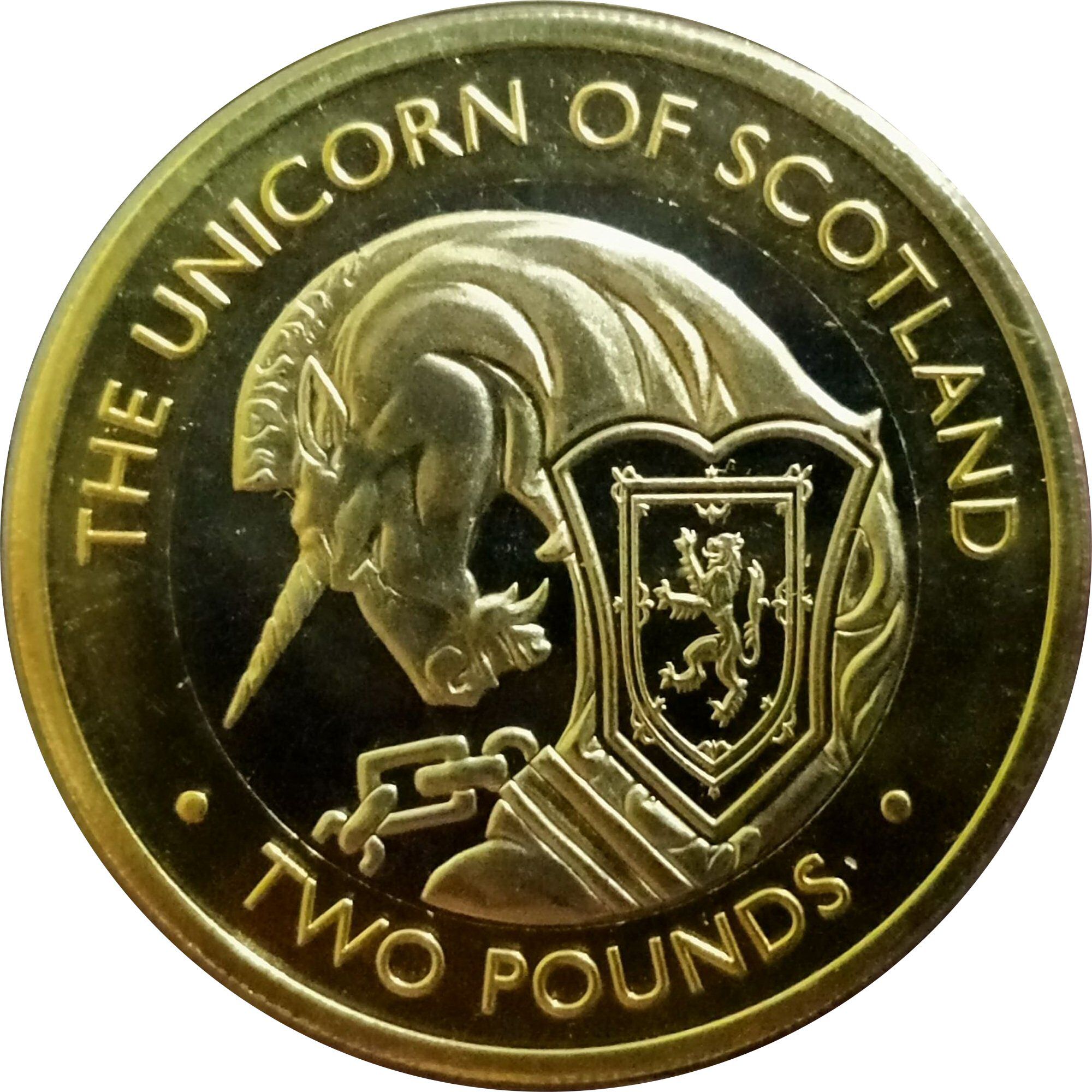 The 2 Pounds coin featuring Elizabeth II and the Unicorn of Scotland is a striking example of modern British coinage, issued in 2021 by the British Indian Ocean Territory. The coin's obverse displays a detailed profile of Queen Elizabeth II, adorned with a regal crown and surrounded by the inscription 'ELIZABETH II BRITISH INDIAN OCEAN TERRITORY 2021'. The reverse showcases the iconic Unicorn of Scotland, a symbol of purity and strength, which is intricately designed, reflecting the rich heritage of Scotland. Made from bimetallic materials, with a copper-nickel center and a nickel brass ring, this coin is not composed of precious metals, making it more accessible to collectors while still holding significant numismatic value due to its limited mintage and unique design elements.