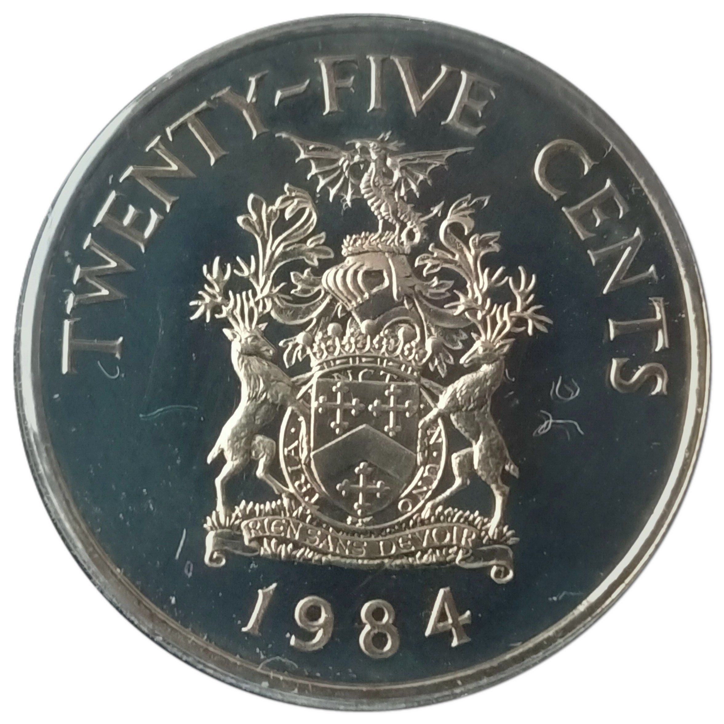 The 25 Cents coin from Bermuda, issued in 1984, features a striking portrait of Queen Elizabeth II, showcasing her profile adorned with a crown. This design reflects the British monarchy's historical significance in Bermuda and is a symbol of the island's colonial heritage. The coin is composed of copper-nickel, weighing 5.96g, which contributes to its durability and appeal as a collectible. The reverse side typically features local motifs or symbols, enhancing its cultural value. As a coin from a limited year range, it holds importance for collectors, especially those focused on British Commonwealth numismatics. Its base metal composition means it does not carry intrinsic precious metal value, but its numismatic appeal can elevate its market worth.