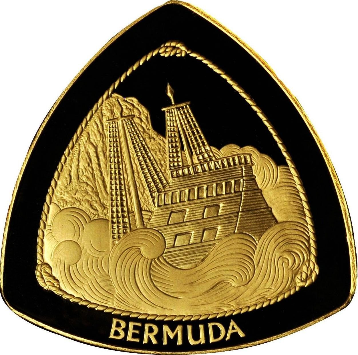 The 60 Dollars coin issued by Bermuda in 1997 commemorates the wreck of the 'Sea Venture,' an important historical event. The coin features a striking design with a profile of Queen Elizabeth II, adorned with a crown, which highlights the royal heritage of Bermuda. The triangular shape of the coin is unique and adds to its visual appeal, while the gold composition (.999) ensures its intrinsic value and desirability among collectors. The black background contrasts beautifully with the gold, enhancing the details of the design. This coin not only serves as a piece of currency but also as a collectible item that reflects Bermuda's maritime history and royal connections, making it significant for numismatists and history enthusiasts alike.