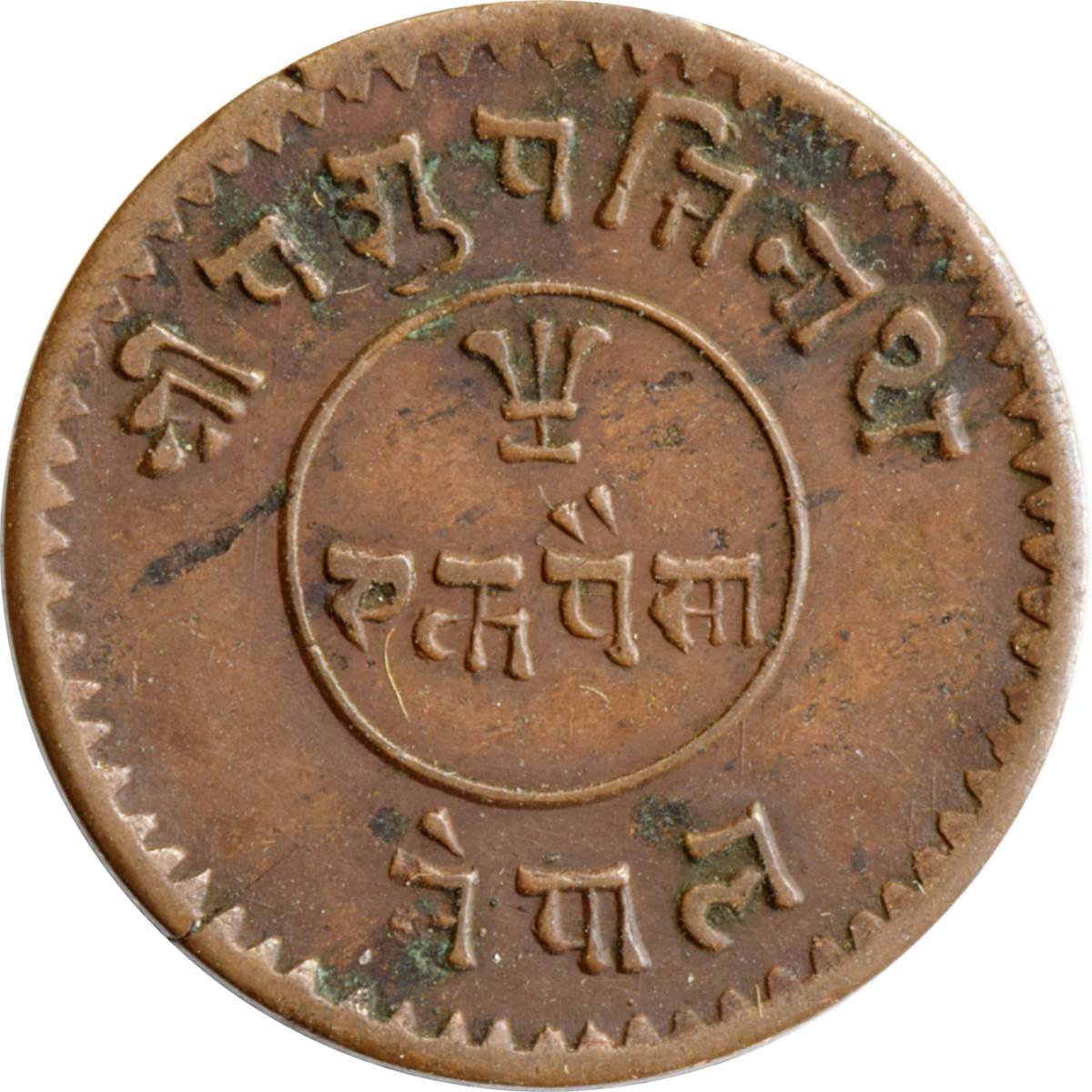 This is the 1919 Circulation issue with a mintage of unknown. The Tribhuvana Bir Bikram coin issued in 1918 represents a fascinating piece of Nepalese numismatic history, commemorating the reign of King Tribhuvana Bir Bikram Shah Dev, a pivotal figure in modern Nepal's development. Struck in brass with a denomination of 0.02 Mohar, this coin features traditional motifs that reflect the cultural heritage of Nepal, showcasing the artistry and craftsmanship of the time. Although the mint origin and exact mintage remain unknown, the coin's rarity score of 5 out of 10 suggests it is relatively accessible to collectors, making it a desirable addition to any Nepalese or South Asian coin collection. Its circulation condition adds to its historical narrative, as it was used in everyday transactions, providing insight into the economic practices during the early 20th century in Nepal. Collectors prize this coin not only for its aesthetic value but also for its representation of a significant era in Nepalese history.